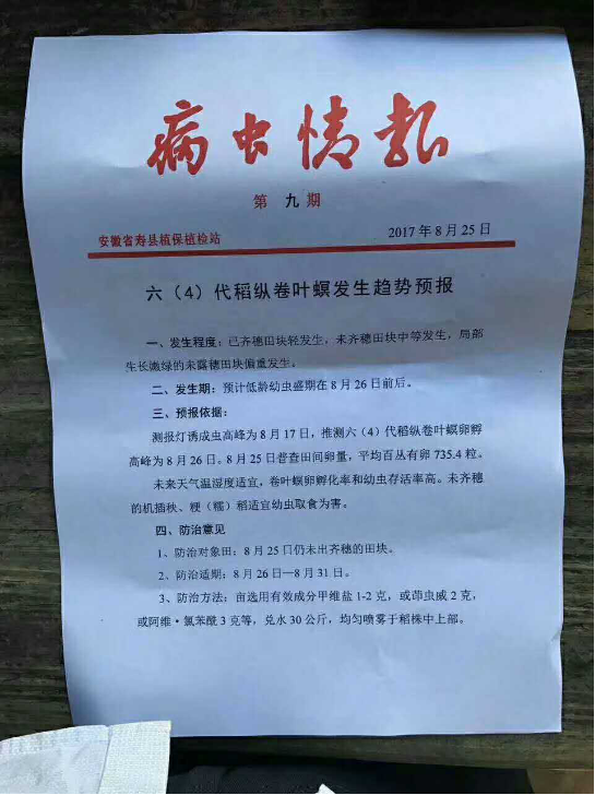 發(fā)生趨勢(shì):二代二化螟全區(qū)中等發(fā)生,局部地區(qū)偏重發(fā)生。