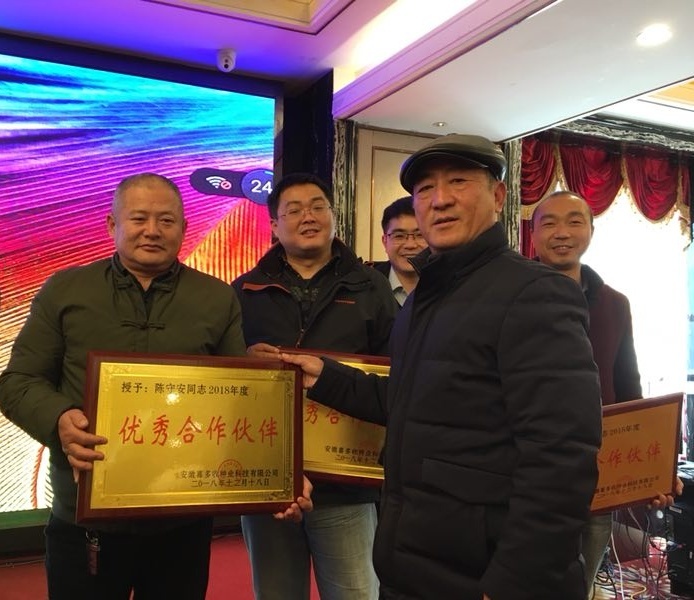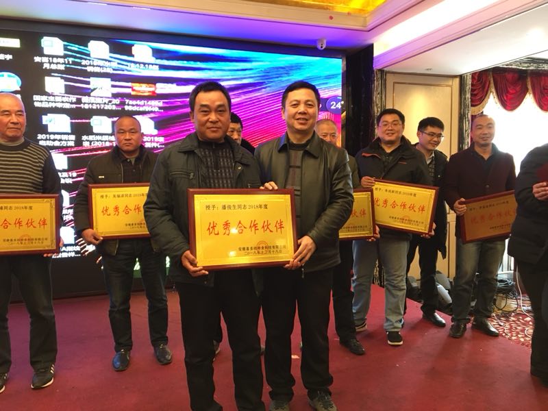 2018年12月17--18日在六安市永泰大酒店,來自金安區(qū)、裕安區(qū)、霍邱、壽縣等地的鄉(xiāng)鎮(zhèn)經(jīng)銷商和種植大戶等200余人歡聚一堂,共享2018年合作營銷成功的喜悅、共商2019年合作經(jīng)銷共贏的計(jì)策。