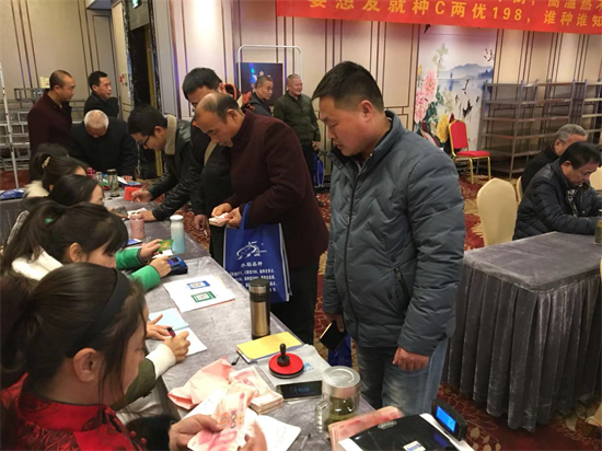 會(huì)議第三項(xiàng)由安徽喜多收種業(yè)的副總經(jīng)理趙見朝先生對公司2019年度水稻銷售優(yōu)惠政策進(jìn)行了詳細(xì)的解讀,并在講解中穿插由趙總自己制作的深兩優(yōu)571和C兩優(yōu)198兩個(gè)品種今年在各地農(nóng)戶田間種植表現(xiàn)現(xiàn)場采訪視頻播放,使會(huì)議現(xiàn)場經(jīng)銷商們身臨其境,直觀感受到好品種就是不一樣,趙總的演講在大家的掌聲中結(jié)束。隨后,大家踴躍交款,參加享受公司今年的水稻銷售優(yōu)惠政策等。
