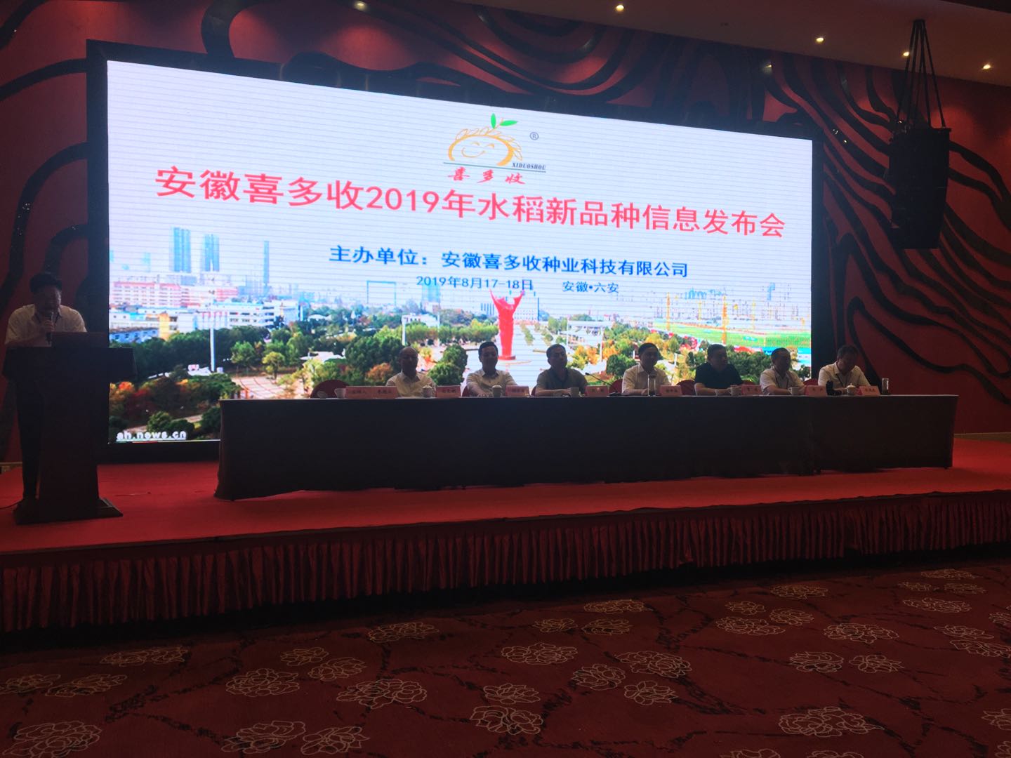 2019年8月17-18日,我公司在悠然藍(lán)溪隆重召開(kāi)了“安徽喜多收2019年水稻新品種信息發(fā)布會(huì)”,邀請(qǐng)來(lái)自江蘇、湖南、湖北,安徽等各地的500多位種業(yè)界嘉賓到會(huì),安徽省種子管理總站、六安市農(nóng)業(yè)農(nóng)村局、六安市種子管理站領(lǐng)導(dǎo)以及安徽《種子與種苗》、皖西日?qǐng)?bào)、六安電視臺(tái)、六安新聞網(wǎng)、六安新周報(bào)等新聞媒體親臨本會(huì)指導(dǎo)、采訪。