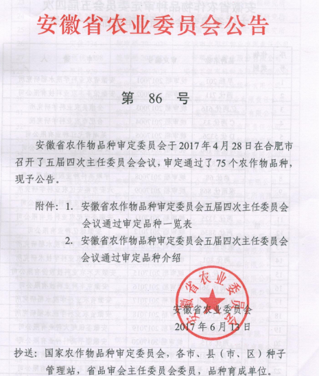 審定意見:符合安徽省稻品種審定標準,通過審定。適宜在安徽省一季稻區(qū)推廣種植,需要注意對白葉枯病等病害進行防治。
