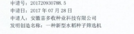 實用新型專利《一種新型水稻種子篩選機》專利申請受理通知書