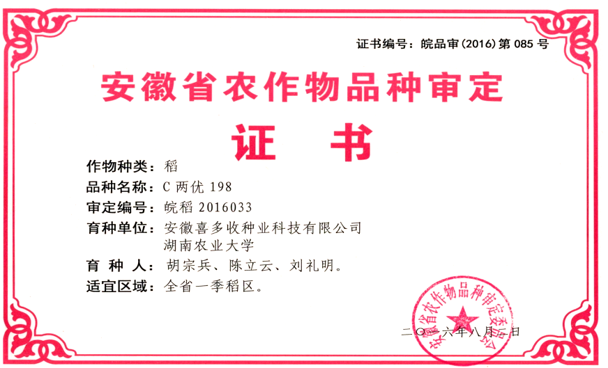 C兩優(yōu)198證書(shū)