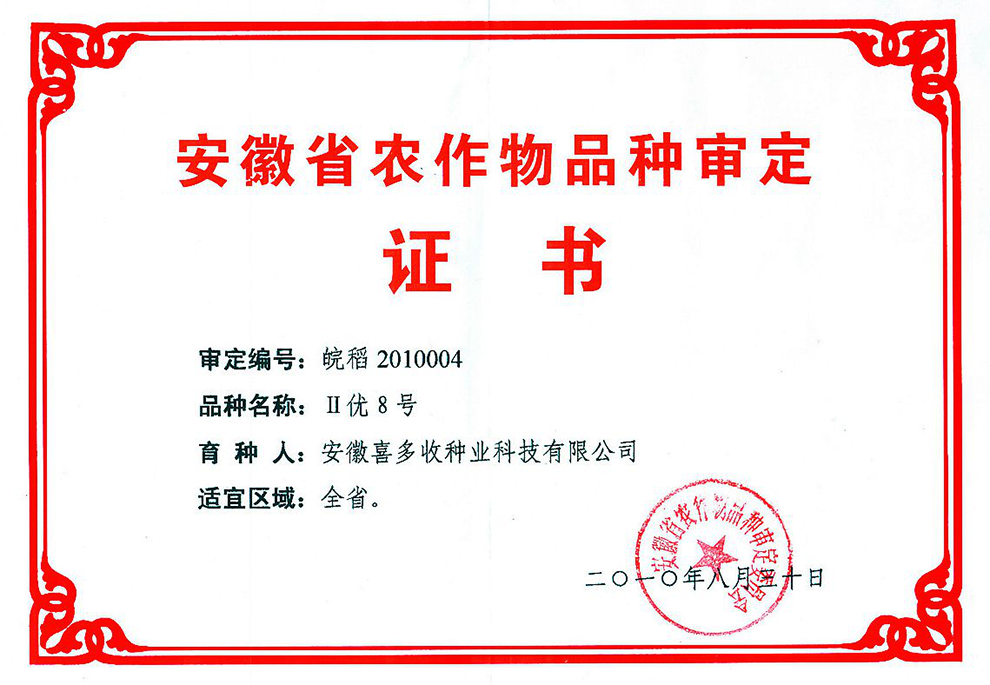 Ⅱ優(yōu)8號證書
